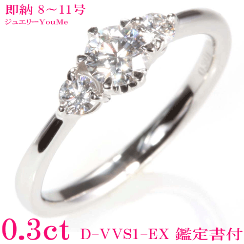 ダイヤ モンド カラット 0.3カラットUP カラー D(トップグレード最高) クラリティ VVS1(高品質最高レベル) カット EX(トップグレード最高)エクセレント サイドダイヤ 0.07ct×2、Hカラー、SIクラス、カットVG 寸法(9号サイズ) 高さ(セッティング部)約3.9mm 幅約5.4mm 重さ 約3.5g 鑑定書 中央宝石学研究所 材質 ハードプラチナpt900(高品質新素材) 8〜11号サイズ、即日発送対応(刻印有は10日後の発送です。