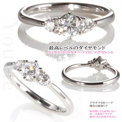 お電話でのお問い合わせは 03-5842-4765 昼12〜深夜0時 婚約指輪 ダイヤモンド 0.3ct 結納 エンゲージリングに相応しい品質、 0.3カラット、トップグレード最高Dカラー、高品質VVS1、トップグレード最高EXエクセレントカット、 品質を保証するダイヤモンド鑑定書も無料付属。