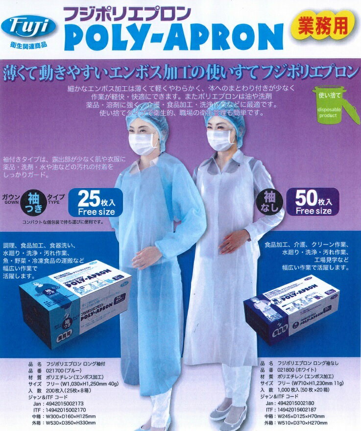 フジ 使い捨てポリエプロン ロング袖なし ホワイト 50枚入 品番:021800