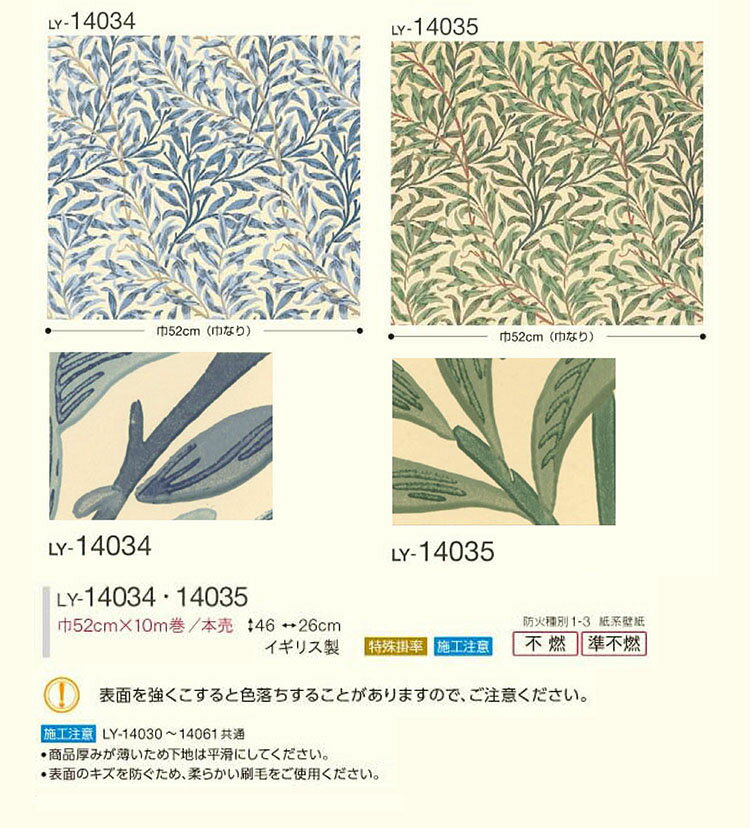 送料について詳しくはこちら>> こちらの商品は、輸入壁紙サンプル リリカラ/ウォールデコMORRIS&Co. LY-14034 ●メーカー直送の商品とサンプルを同時にご購入の場合、サンプルのみメール便で発送させていただきます。