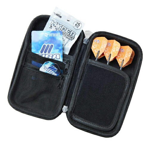 従来のスマートケース同様、ダーツをそのまましまう事ができ、 小物類も一緒に収納できるオールインワンタイプ ■スペック サイズ:高さ175mm×幅140×厚さ(最薄部)35mm(最厚部)45mm カラーバリエーション:レッド・オレンジ